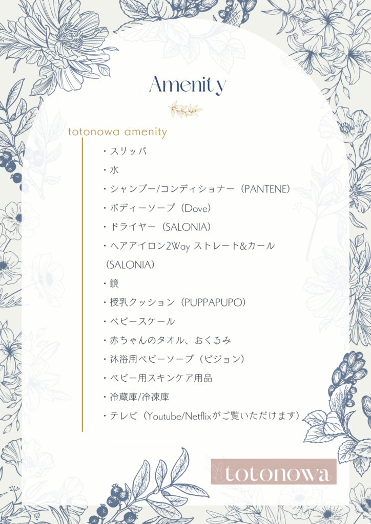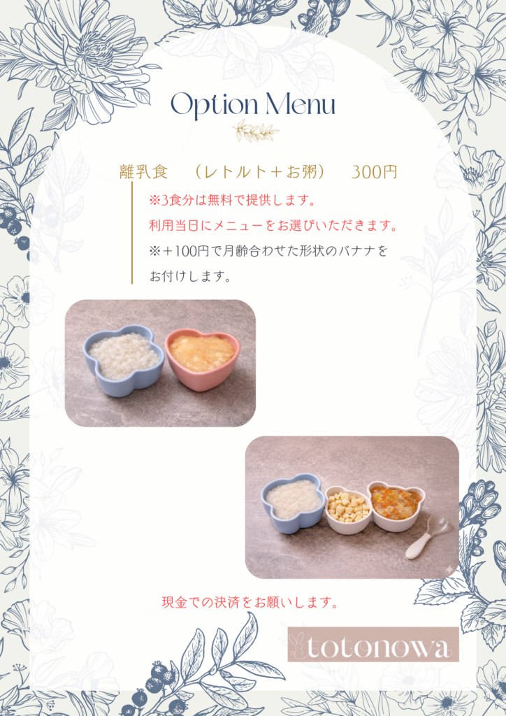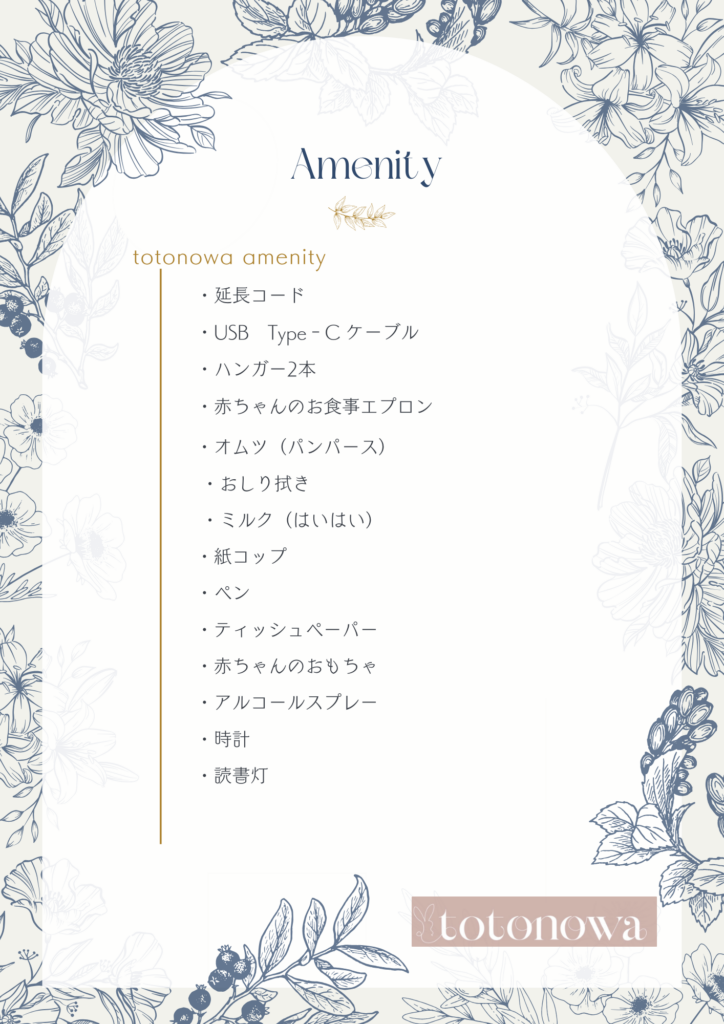 • 母子ともにアレルギー対応は致しかねます。必要な物品は各自でご持参ください。