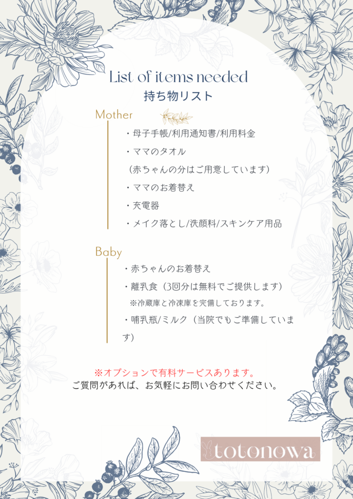 助産院スタッフの調整時間となりますので、母児同室のご協力をお願いします。